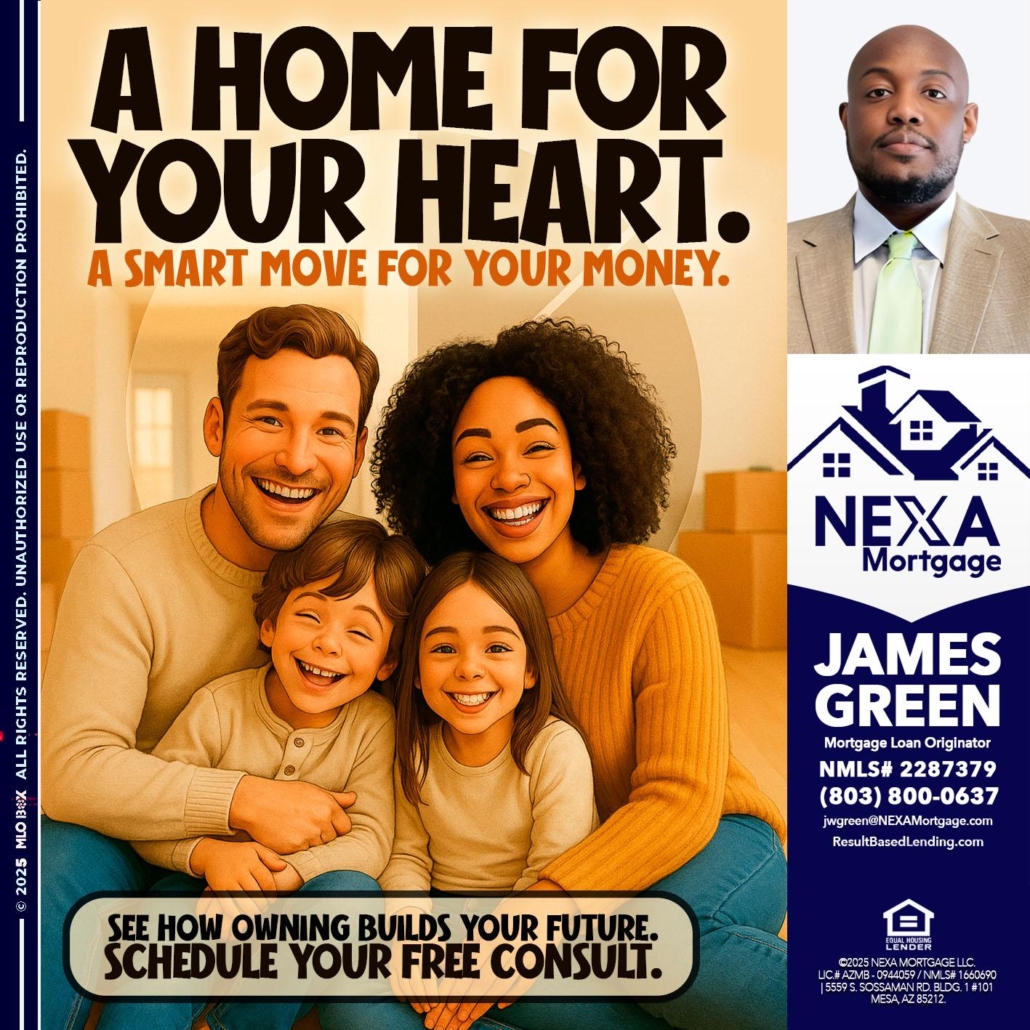 Hi, my name is James Green. I’m a Loan Officer with NEXA Mortgage LLC., offering personalized mortgage solutions, fast customized quotes, great rates and service with integrity.