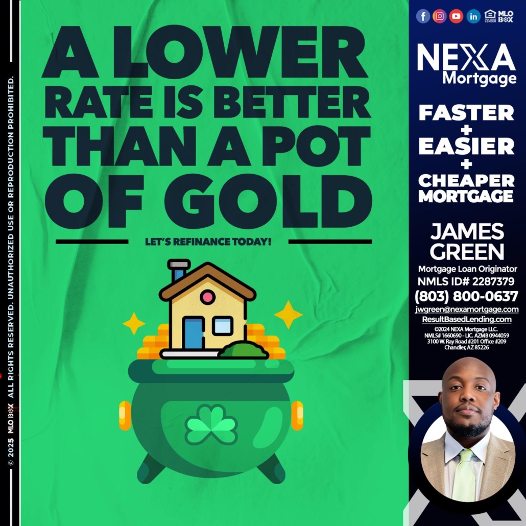 Hi, my name is James Green. I’m a Loan Officer with NEXA Mortgage LLC., offering personalized mortgage solutions, fast customized quotes, great rates and service with integrity.