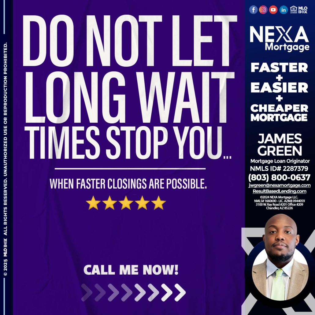 Hi, my name is James Green. I’m a Loan Officer with NEXA Mortgage LLC., offering personalized mortgage solutions, fast customized quotes, great rates and service with integrity.