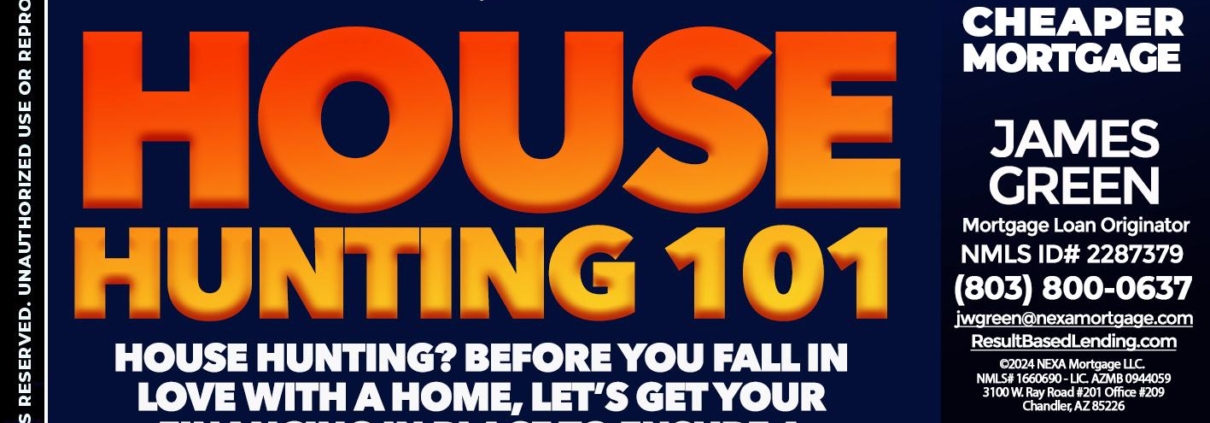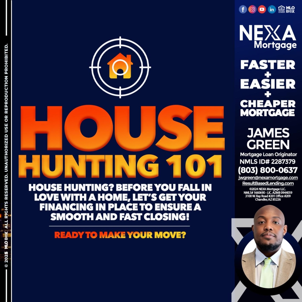 Hi, my name is James Green. I’m a Loan Officer with NEXA Mortgage LLC., offering personalized mortgage solutions, fast customized quotes, great rates and service with integrity.