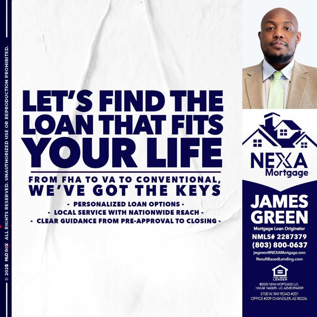Hi, my name is James Green. I’m a Loan Officer with NEXA Mortgage LLC., offering personalized mortgage solutions, fast customized quotes, great rates and service with integrity.