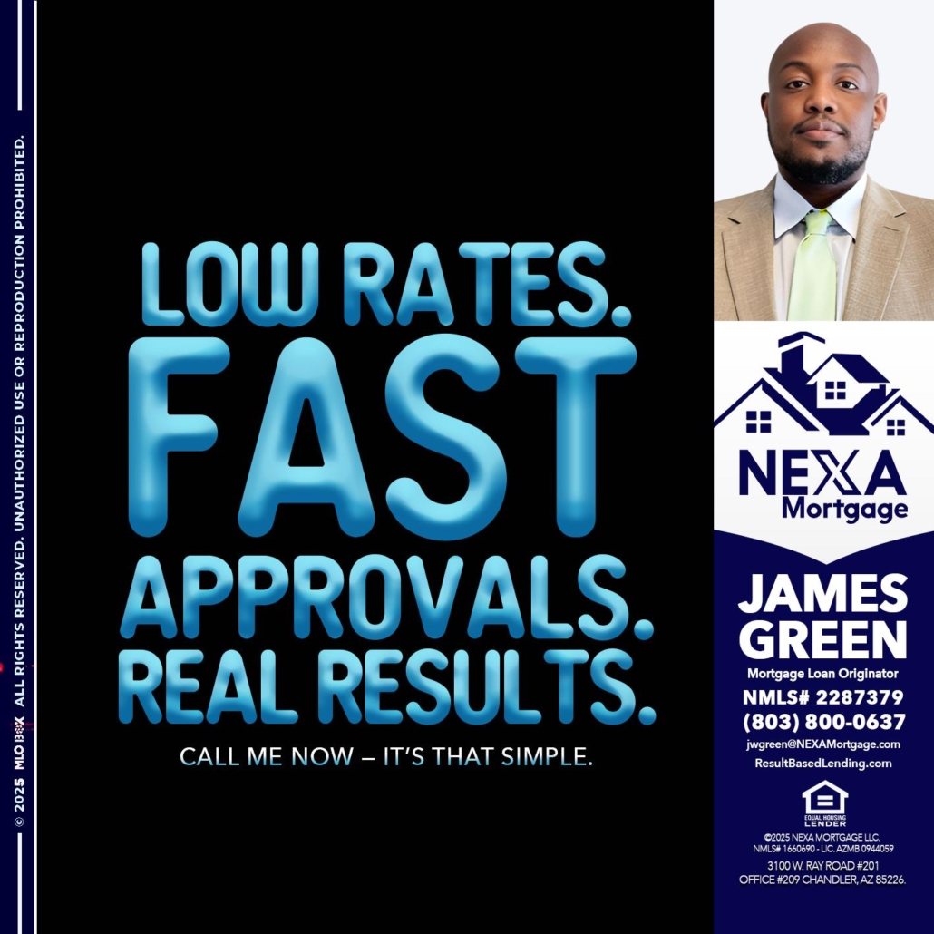 Hi, my name is James Green. I’m a Loan Officer with NEXA Mortgage LLC., offering personalized mortgage solutions, fast customized quotes, great rates and service with integrity.