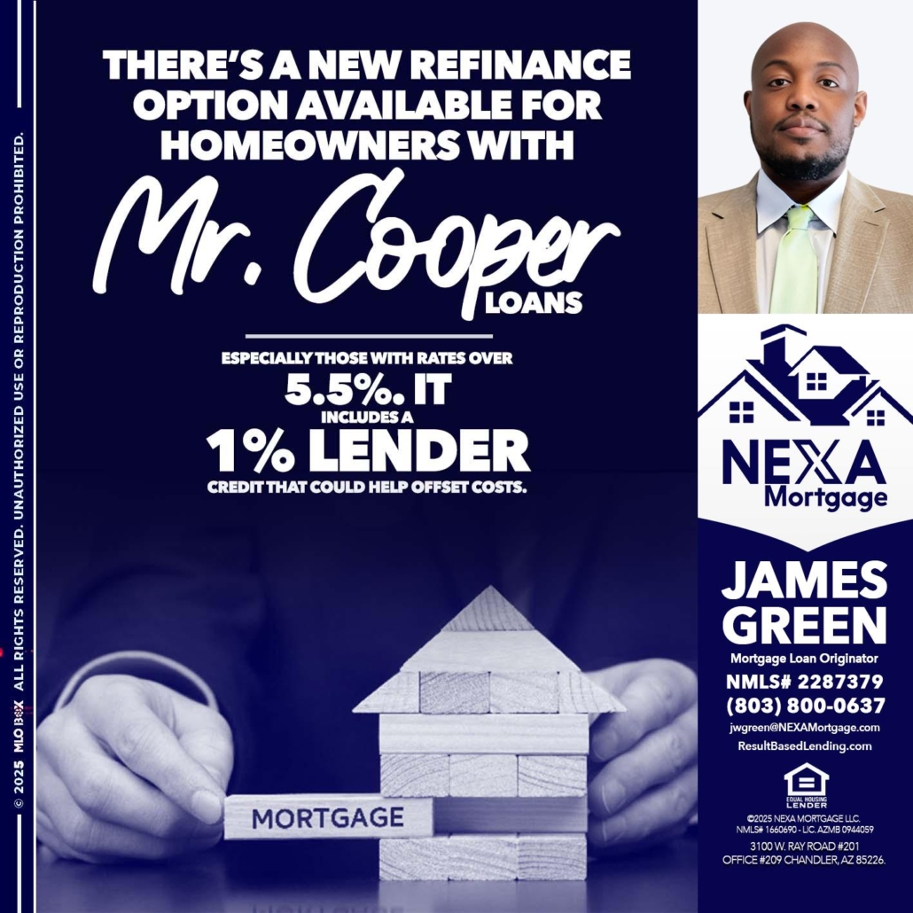 Hi, my name is James Green. I’m a Loan Officer with NEXA Mortgage LLC., offering personalized mortgage solutions, fast customized quotes, great rates and service with integrity.