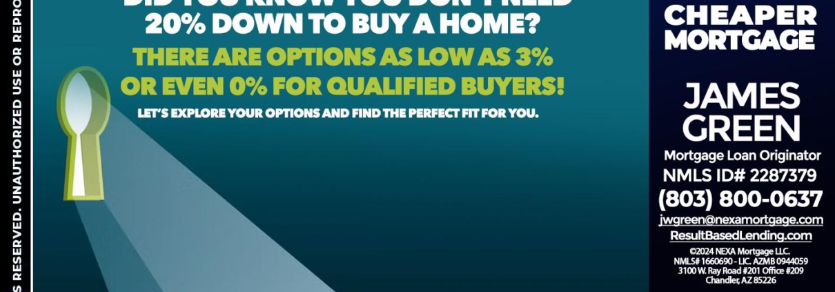 Hi, my name is James Green. I’m a Loan Officer with NEXA Mortgage LLC., offering personalized mortgage solutions, fast customized quotes, great rates and service with integrity.