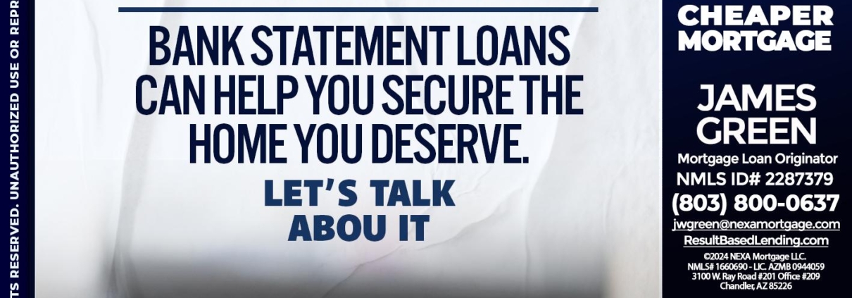 Hi, my name is James Green. I’m a Loan Officer with NEXA Mortgage LLC., offering personalized mortgage solutions, fast customized quotes, great rates and service with integrity.