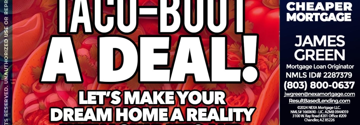 Hi, my name is James Green. I’m a Loan Officer with NEXA Mortgage LLC., offering personalized mortgage solutions, fast customized quotes, great rates and service with integrity.