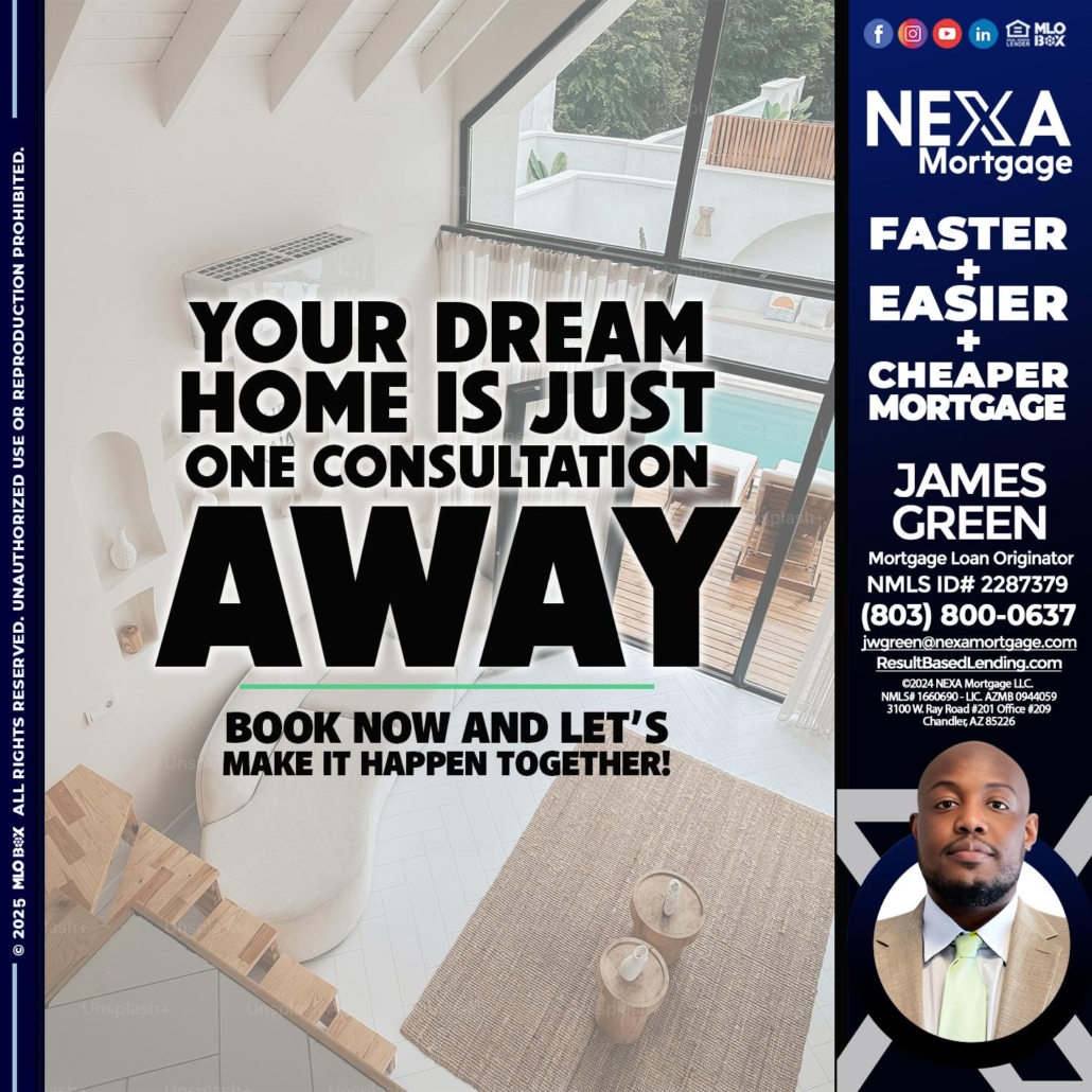 Hi, my name is James Green. I’m a Loan Officer with NEXA Mortgage LLC., offering personalized mortgage solutions, fast customized quotes, great rates and service with integrity.